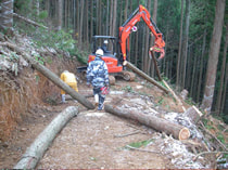 間伐によって発生する小径材(細い木材)は、従来は建築材や合板などへの利用が難しく、山林内に放置されることが多くありました。しかし本工法では、これらの未利用材を地盤補強材として価値ある形で活かすことができます。 - 環境負荷の低減